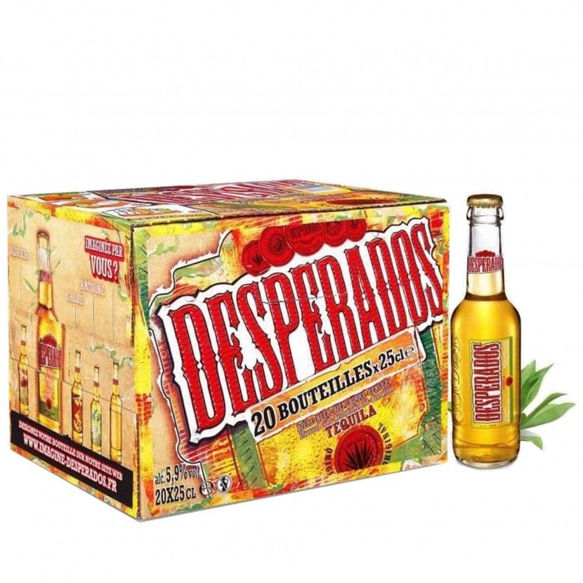 Desperados is an agave spirit-flavored pale lager beer with 5.9% alcohol by volume (ABV) created and produced by the French brewing company.